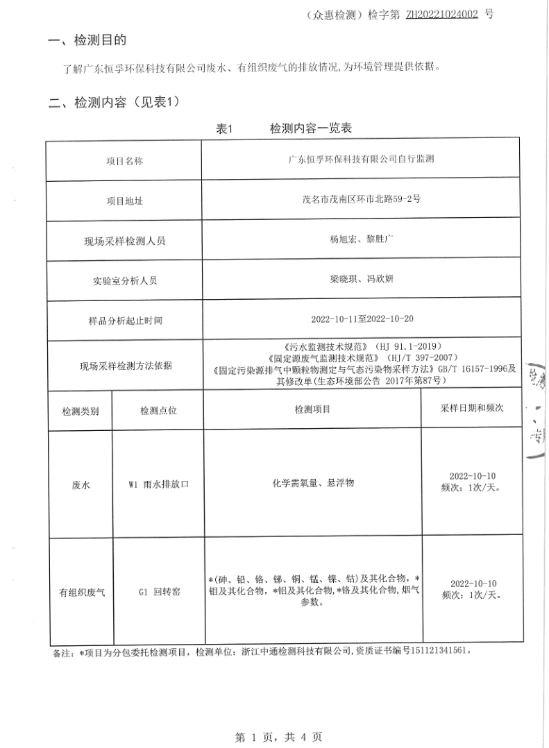 2022年10月快直播雨水、废气自行监测报告